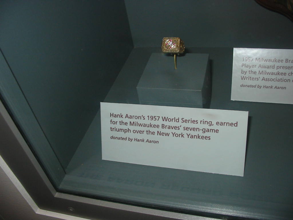 I drove to Cooperstown, NY and toured the Baseball Hall of Fame, fulfilling a childhood dream. Hank Aaron's " suite" is the largest display, larger than Babe Ruth's, becasue Hank donated morei tems than any other baseball player. After spending about three hours I went to my car, then returned to spec another two hours. These are some Hank Aaron's items.
